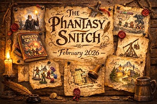 February 2026 edition of The Phantasy Snitch—fantasy news, rumors, and realm-ready inspiration featuring classic sword-and-sorcery vibes, fantasy merch…