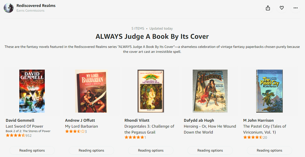 Brodryk collects the fantasy books featured in ALWAYS Judge A Book By Its Cover right here - chosen the proper way, by bold covers, mighty heroes, and art that promises Adventure before the first page is ever turned.